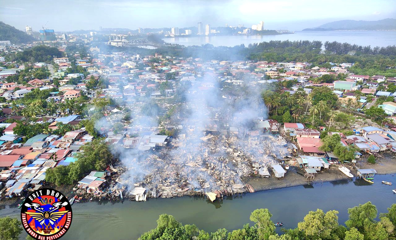 “Operasi memadam kebakaran turut dibantu 16 anggota dari BBP Kota Kinabalu untuk memadam kebakaran membabitkan rumah setinggan jenis tidak kekal dengan anggaran 50 buah rumah musnah terbakar.