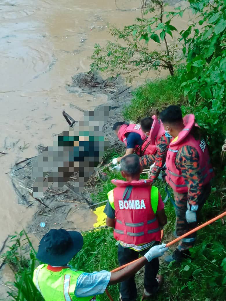 TAWAU : Jabatan Bomba dan Penyelamat Tawau berjaya membantu mengangkat mayat berada di dalam sungai di Jambatan Kampung Iban Merotai, Tawau di sini petang tadi.