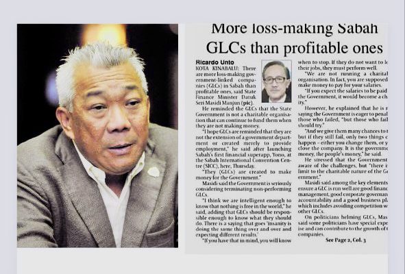 KOTA KINABALU: Kebanyakan syarikat berkaitan kerajaan (GLC) di Sabah dalam situasi lemah disebabkan ia tidak diurus dengan baik, kata Pengerusi…