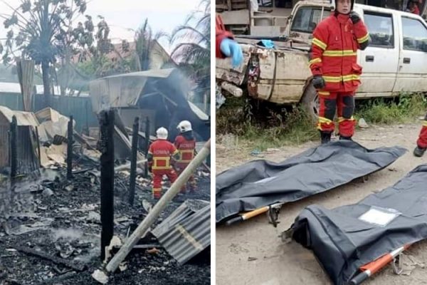 KOTA KINABALU: Dua beradik ditemui rentung dalam kebakaran enam rumah di Kampung Pulutan, Menggatal, Kota Kinabalu. Mayat Jackron Jabri, 6,…