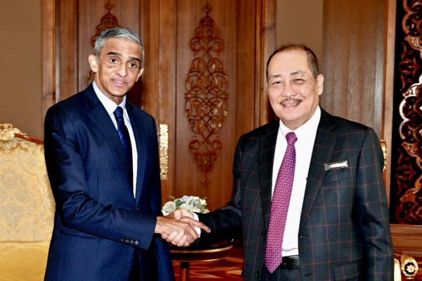 KOTA KINABALU: Ketua Menteri, Datuk Seri Panglima Hajiji Noor menerima kunjungan hormat Pesuruhjaya Tinggi Singapura ke Malaysia, Vanu Gopala Menon…