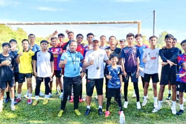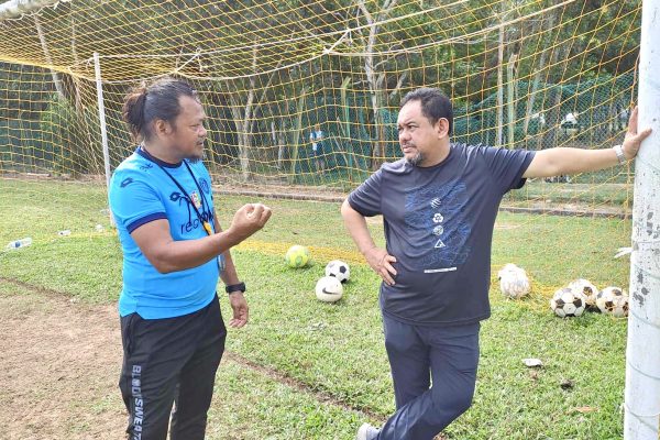 KOTA KINABALU : Jurulatih berpengalaman, Jelius Ating berkongsi pengalamannya sambil menerangkan serba sedikit yang perlu ada ke atas pemain bola…