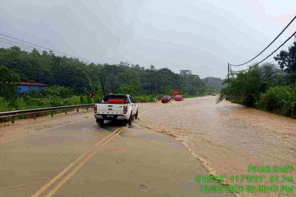 PITAS: Hujan berterusan sejak pagi tadi menyebabkan banjir kilat di kawasan Jalan Langkon, Pitas, melibatkan jarak dari CH 51.700 hingga…