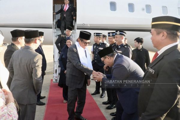 KOTA KINABALU: Yang di-Pertua Negeri Sabah, Tun Musa Aman bersama Isteri, Toh Puan Faridah Tussin tiba di Terminal 2, Lapangan…