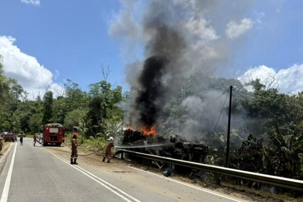 KOTA BELUD: Seorang lelaki maut selepas lori 10 tan yang dipandunya terbakar dalam kemalangan di Ulu Kukut, di sini, hari…