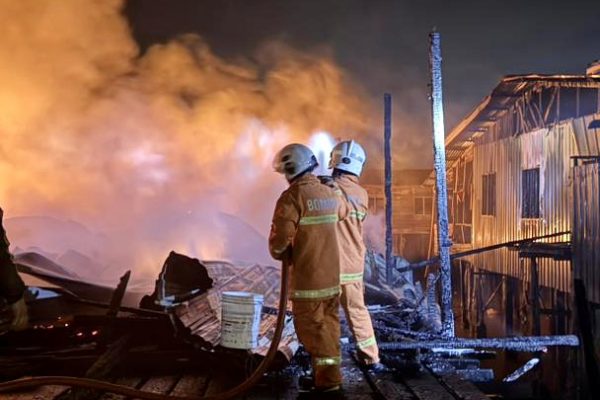 TAWAU : Seorang wanita melecur di bahagian tangan manakala lima rumah setinggan atas air musnah dalam kebakaran di Batu 4,…
