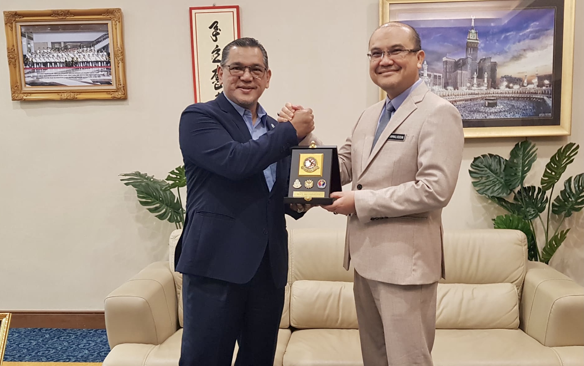 KOTA KINABALU : Ketua Pegawai Eksekutif ESSCOM, Datuk Dr. Jamaluddin Mohd. Ali melakukan kunjungan hormat terhadap Pembantu Menteri kepada Ketua Menteri, Datuk Nizam Abu Bakar Titingan di pejabat Menara Kinabalu di sini, hari ini.
