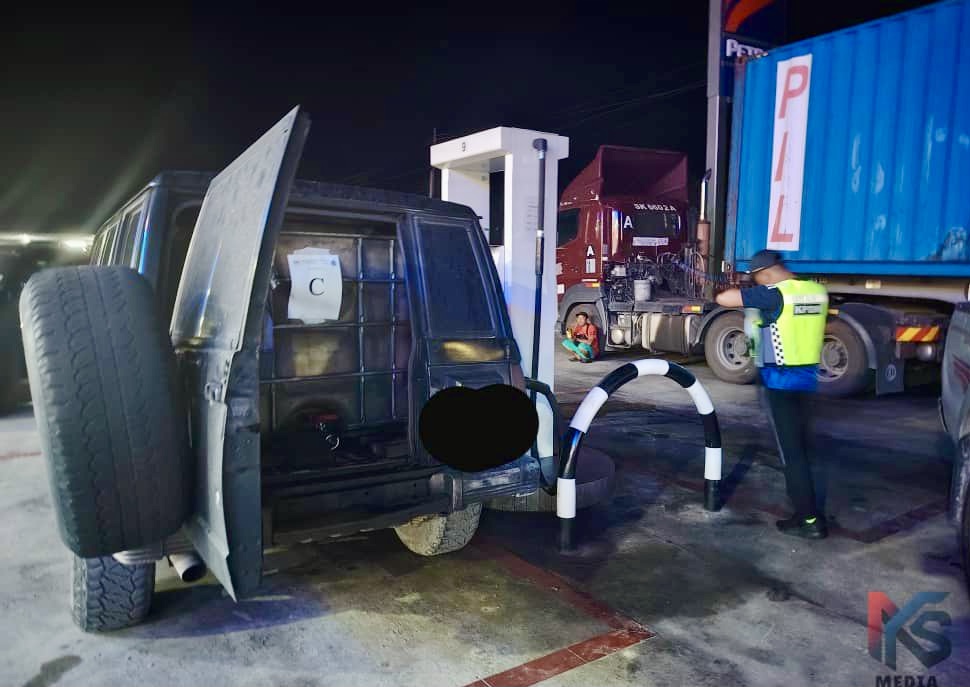 KOTA KINABALU: Taktik seorang lelaki menyeleweng diesel bersubsidi terbongkar selepas ditahan dalam Ops Tiris 4.0 di sebuah stesen minyak di Penampang, baru-baru ini.