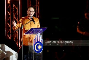 Anwar turut menyeru seluruh rakyat agar menanam semangat jiwa merdeka dan terus bersatu hati dalam membangunkan Malaysia selain menjauhi sikap perkauman sempit serta kebencian antara satu sama lain.