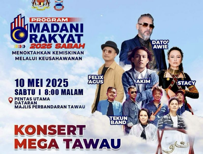 Unit Penyelarasan Lonjakan Prestasi (PACU) Pejabat Perdana Menteri menerusi hantaran yang dimuat naik di Facebook hari ini memaklumkan konsert yang berlangsung di Dataran Majlis Perbandaran Tawau pada 8 malam 10 Mei itu antaranya akan menampilkan Datuk Awie, Stacy, Akim, Felix Agus dan Tekun Band.
