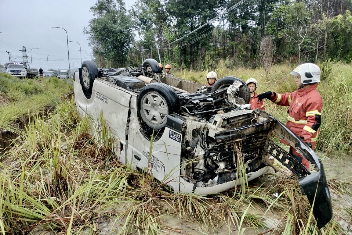 KOTA KINABALU : Seorang lelaki maut selepas kenderaan dipandunya jenis van terbabas sendiri lalu terbalik di Bandar Sierra Telipok, di sini petang tadi.