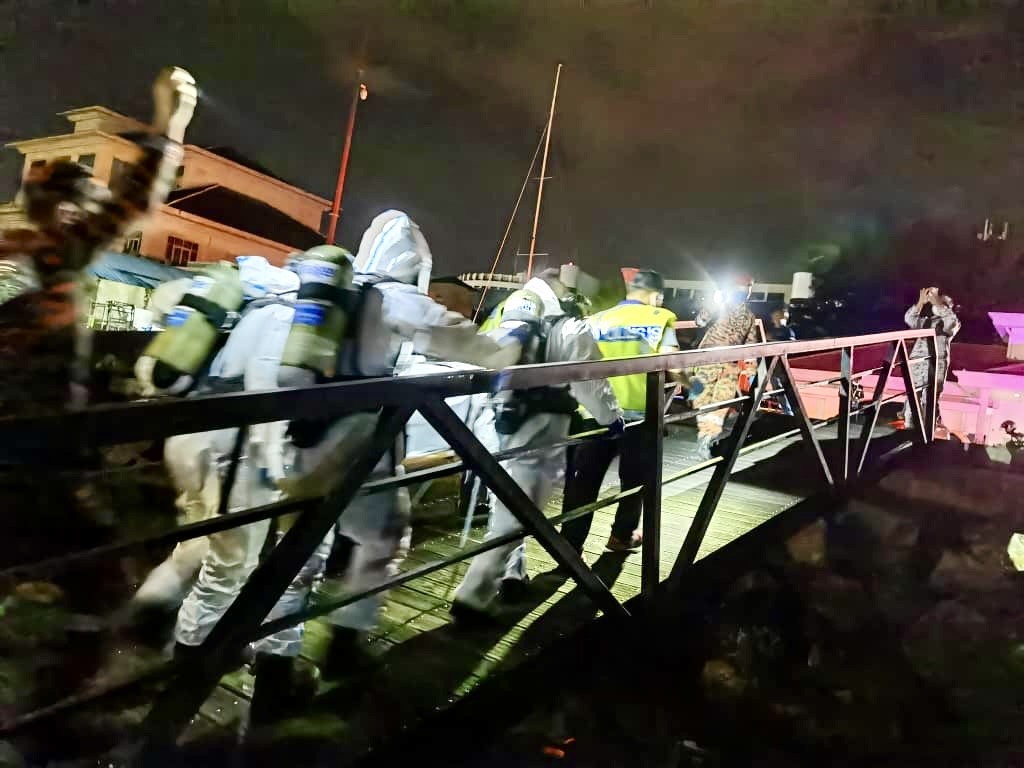 Pihak Bomba bersama 11 anggota telah melakukan operasi pemindahan mayat berkenaan ke jeti Marina Awam sekitar jam 10.19 malam sebaik menerima maklumat daripada pihak polis.