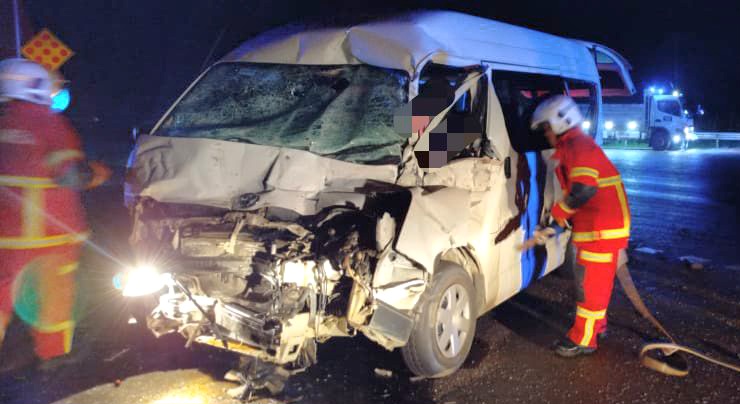 Dalam kejadian pada jam 9.20 malam itu, pemandu lori dan seorang penumpang van tersepit sebelum berjaya dikeluarkan pasukan bomba menggunakan peralatan khas Rescue Tools.