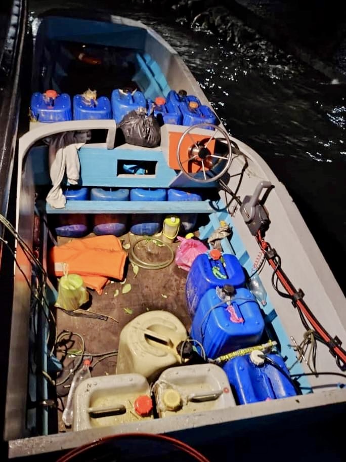 Katanya, pihak Maritim Malaysia kemudiannya mengarahkan suspek berhenti dengan menggunakan pembesar suara dan siren untuk pemeriksaan.