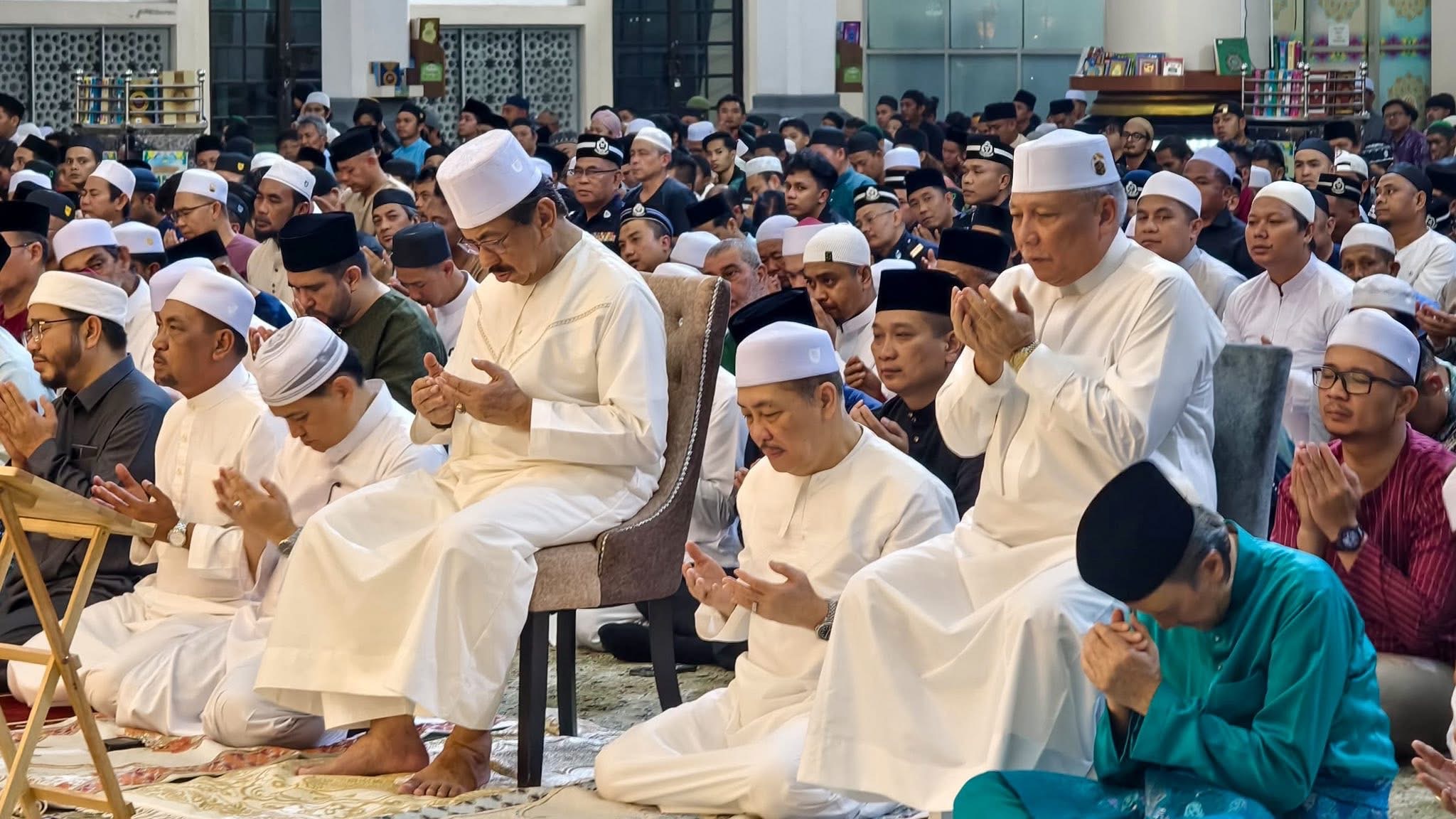 KOTA KINABALU: Yang di-Pertua Negeri Sabah, Tun Musa Aman dan isteri, Toh Puan Faridah Tussin, menghadiri majlis solat hajat, bacaan Yasin, tahlil dan doa khas bagi Allahyarhamah Zara Mahathir yang berlangsung di Masjid Bandaraya malam ini.