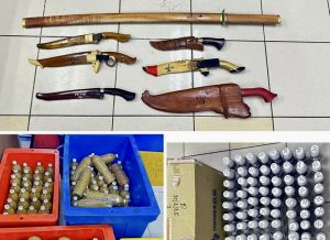 Katanya, polis merampas sebilah pedang samurai bersama enam bilah parang dipercayai digunakan sebagai senjata untuk tujuan tertentu.