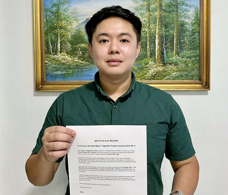 KOTA KINABALU: Ketua Pemuda MCA Sabah, Roger Yapp mengumumkan peletakan jawatan serta semua jawatan lain dalam parti itu berkuat kuasa serta-merta.