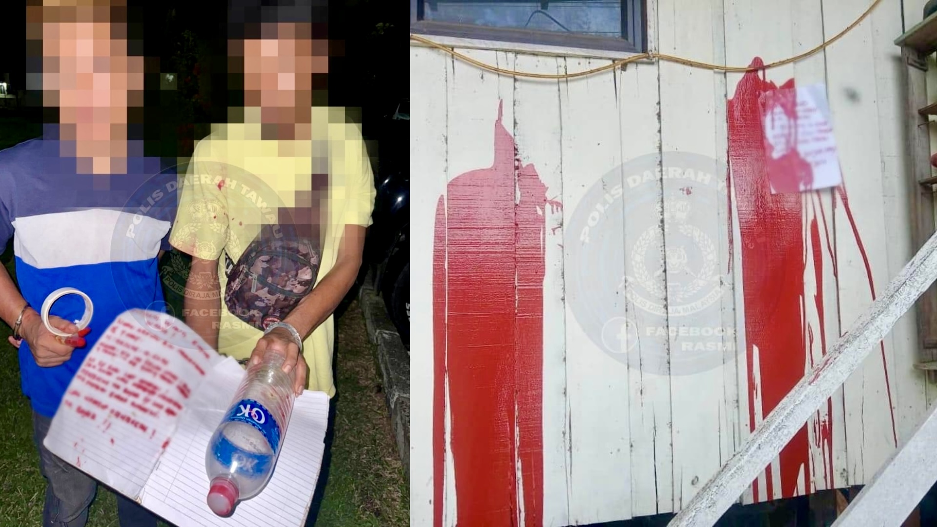TAWAU : Dua lelaki tempatan dipercayai terlibat kes menyimbah cat merah untuk mengugut peminjam wang membayar hutang dalam kejadian di Batu 6, Jalan Apas, Tawau, di sini pada 24 Ogos lalu.