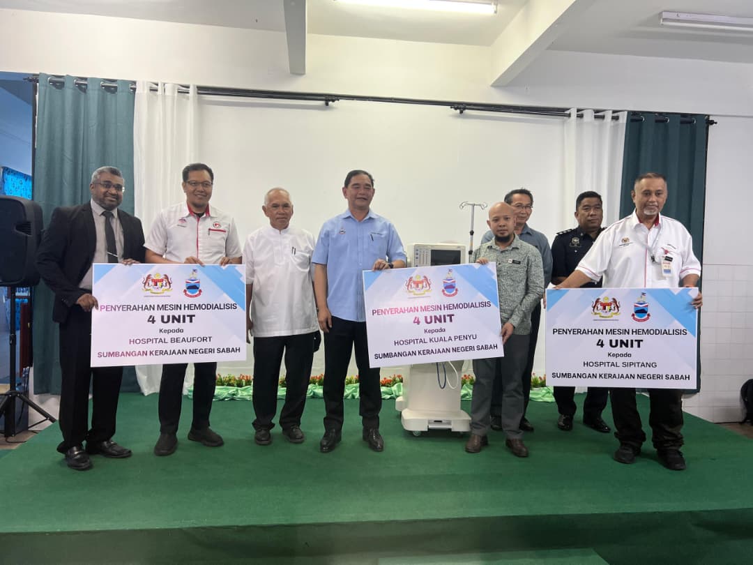 “Ini dilaksanakan menerusi Skim Bantuan Kesihatan Sabah Maju Jaya ‘Sabah Sejahtera’ bagi meningkatkan akses rawatan kepada pesakit buah pinggang khususnya golongan kurang berkemampuan,” katanya pada Majlis Penyerahan Empat Mesin Hemodialisis kepada Hospital Sipitang oleh Datuk James Ratib, semalam.
