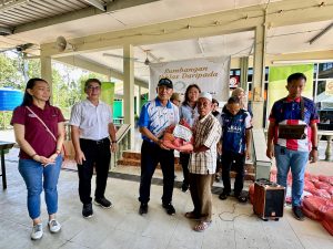 Mereka memberikan sumbangan bakul makanan kepada penduduk kampung terjejas banjir masing-masing di Kampung Tanjung Nipis dan Kampung Kawang Tali Air.