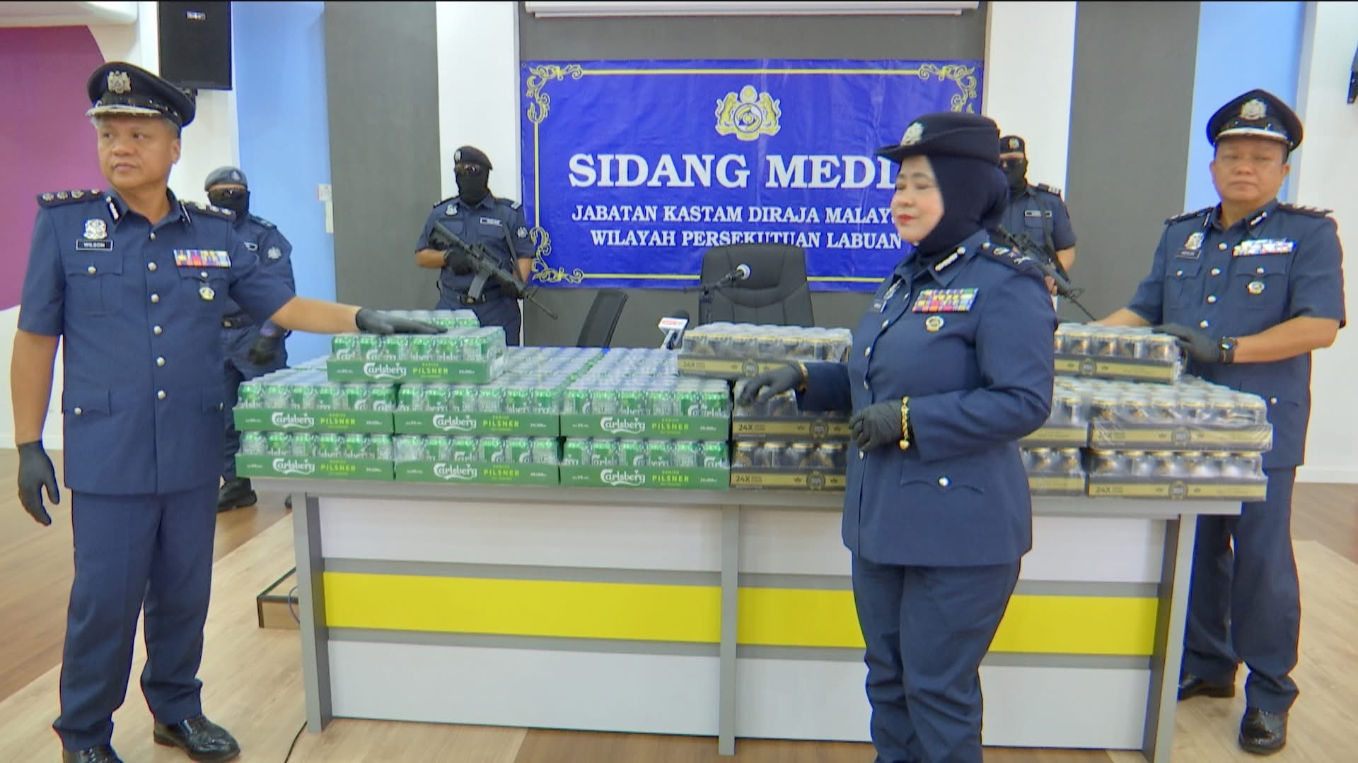 “Pemeriksaan mendapati minuman keras itu diimport menggunakan tiga kontena dan diikrarkan melalui dua Borang Kastam No. 1,” katanya dalam sidang media khas.