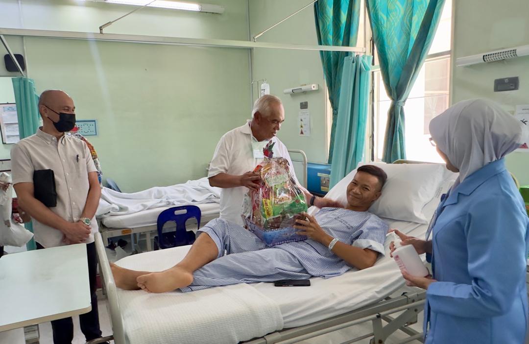 Pengerusi QSB yang juga Ahli Dewan Undangan Negeri Sindumin Datuk Dr Yusof Yacob menyampaikan sumbangan 60 hamper kepada pesakit-pesakit di hospital tersebut.